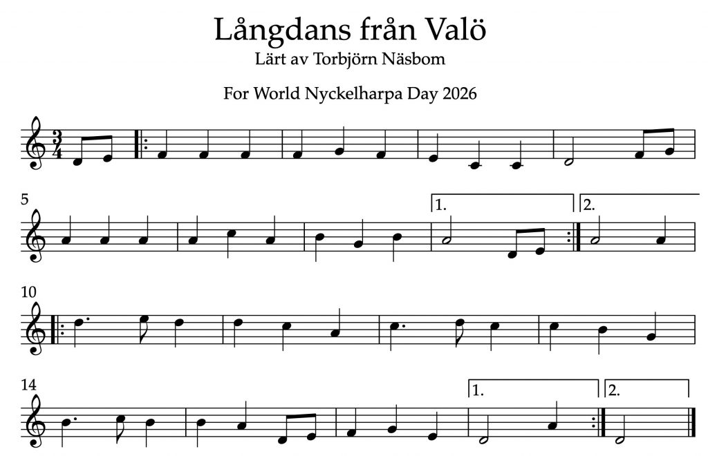 There will be four parts in the official arrangement and an extra really simple part for very new players. The details are exactly the same as the other years. We are playing the tune twice through. You can choose to just play the tune. (Nyckelharpa 1). Or you can do nyckelharpa 2 or one of the two oktavharpa parts. The oktavharpa part is slightly trickier. You can send in your film right away, you can do it live at midday UK time with the livestream. Or you can do it for up to seven days after World Nyckelharpa Day.